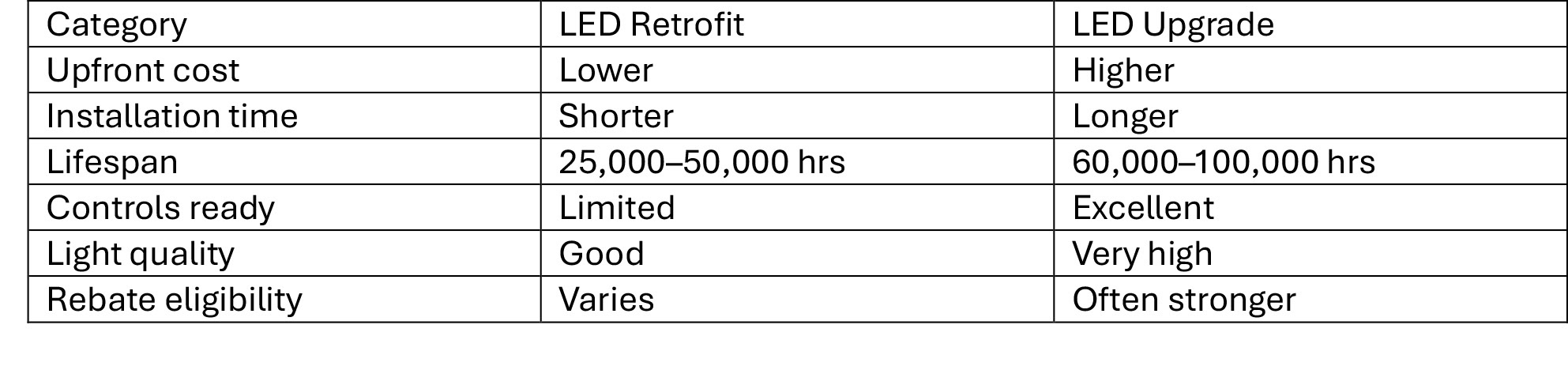 The main advantage of an LED retrofit is speed. Installation is usually faster, material costs are lower, and operations can continue with little interruption. However, performance is still influenced by the age of the original fixture and wiring.